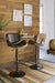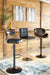 This upholstered swivel bar stool is ultra-contemporary style with a twist. Chrome-tone metal base is a sleek complement to the tailored cushioned seat with faux leather upholstery and squared tufting.