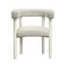 Transport yourself to the Greek Isles with the cream-toned Jackie Outdoor Textured Dining Chair. Crafted with a brand-new concept, a nubby textured outdoor fabric, this chair boasts groundbreaking uniqueness in outdoor-grade materials. Designed with water protection in mind, Jackie serves as both a dining and accent chair. Constructed with weather-resistant high-grade aluminum, Quick-Dry foam, and substantial backrest padding at a height of 28.4", it easily slides under any outdoor dining table for efficient use of space.