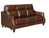 Steve Silver Akari Leather Dual Power Reclining Sofa w/ Dropdown Console in English Chestnut