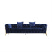 S8001BU SOFA BLUE VELVET:100% POLYESTER/SOLID WOOD STRUCTURE/ HIGH-DENSITY FOAM/ GOLD METAL LEG SIZE:88.6"Lx34.3"Dx30.9"H