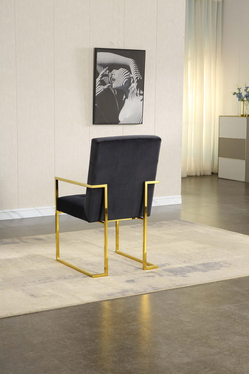Artisan Design FurnitureDINING CHAIR SET OF 2 GREY/BLACK VELVET STAINLESS STEEL GOLD/SILVER MIRRORED FINISH OVERALL SIZE: 18.1"Lx21.1"Dx41.3"H ASSEMBLY REQUIRED