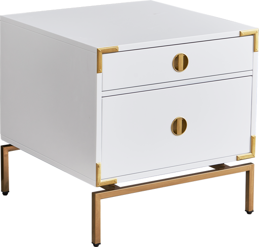 Artisan Design FurnitureET001 END TABLE MDF/WHITE LACQUER/STAINLESS STEEL BASE/GOLD MIRRORED FINISH OVERALL SIZE: 23.6"Lx23.6"Dx23.2"H NOT ASSEMBLY REQUIRED