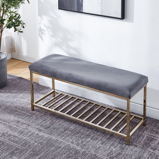 Artisan Design FurnitureBENCH WHITE/GREY/BLACK VELVET STAINLESS STEEL BASE/GOLD FINISH OVERALL SIZE: 39.4"Lx13.8"Dx17.7"H ASSEMBLY REQUIRED