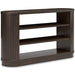 This credenza is perfectly modern in every way. Finished on both sides in a rich wood tone, the bookcase can be floated in a room or used as a divider. Adjustable shelving and open storage deliver a well-organized space for work-from-home professionals. It's a striking study in upscale contemporary form and function.