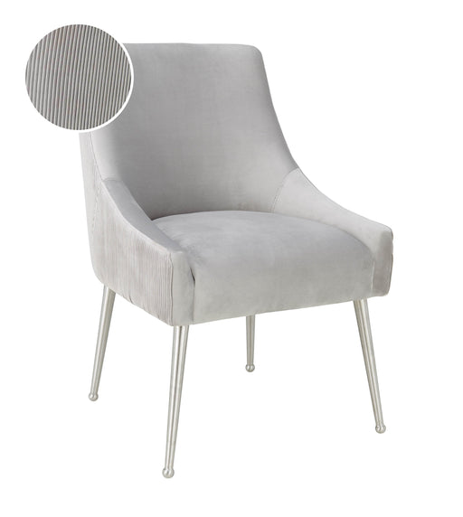 Beatrix Pleated Light Grey Velvet Side Chair - Silver Legs