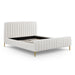 We can't guarantee your dreams will come true, but at least we can help you dream in style. The Angela bed features glam design, channel tufting and gold legs that pop against the sumptuous upholstery. Available in queen or king and multiple color and fabric options.