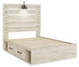 What a delightful take on rustic industrial style. Whether modern loft or modern farmhouse, this full panel storage bed makes itself at home. The wispy whitewash palette enhances without covering the grain for that weathered look you crave. Love to read in bed? You’re sure to find the retro-chic light sconce and USB plug-ins on the open-slat style headboard such a bright idea. Elongated drawer pulls on the under bed storage drawers elevate the aesthetic.
