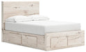 A fresh take on country living, this king panel storage bed strikes the perfect balance between farmhouse and contemporary. Its rustic white finish and replicated reclaimed oak grain merge effortlessly with the hearty, clean-lined look we love today. Six storage drawers help you keep clothes organized and put clutter in its place. You’ll love how this bed's simple design transforms your bedroom into a harmonious haven.