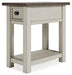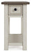 Whether your style is farmhouse fresh, shabby chic or country cottage, you’ll find this chairside end table dressed to impress. Its two-tone finish pairs weathered oak with antique white for that much more quaint character. Charming elements include a plank-and-frame style top, black faceted hardware and a smooth-gliding drawer for remote controls and more. Integrated power supply with dual USB charging ports is ideal for keeping your personal devices at the ready.