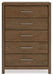 This chest sits comfortably at the intersection of modern lodge and farmhouse aesthetics. Your warm and welcoming disposition is reflected in the charming architectural elements and light brown glazed finish. Even with its poise, the chest remains practical. Smooth-gliding drawers tuck away necessities, defining your bedroom with reliable function and style.