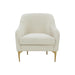 The Serena Accent Chair makes modern design soft and cozy and is sure to become your favorite spot. Available in three colors, this accent chair features a stylish pleated back and is upholstered in a luxurious cream distressed velvet for lots of texture. The clean lines are complemented by tall metal legs finished in brass. Look no further than the Serena Accent Chair for the perfect addition to your home.