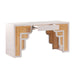 Inspired by the Art Moderne style, the Suzie Desk alludes to Palm Springs art-deco design through its bold colors and curvaceous form. This wooden desk features a soft close drawer for practicality; while its rounded edges and woven rattan details add a playful twist. The Suzie will cement itself as the perfect balance between contemporary living with a touch of glamour in your space!