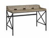 - Grey wood look with black geometric metal accents give the Desk a modern rustic feel for today’s contemporary offices or homes