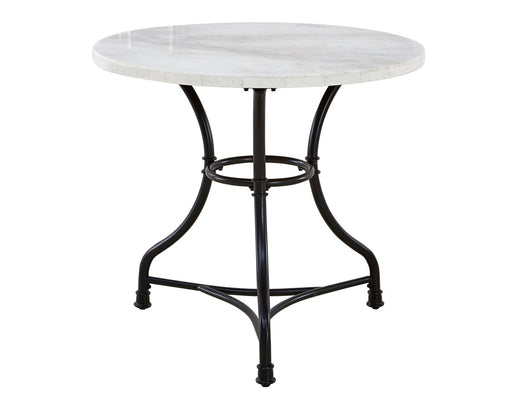 Steve SilverRamona by Steve Silver Deep bronze finish Constructed of a white marble top with iron metal base and iron chair legs Beautiful round white marble ...