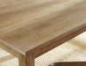 - Beefy linear table post and schoolhouse-style chairs with flared leg