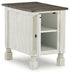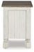 What a fresh interpretation of country classic style. Inspired by American farmhouse craftsmanship, but with an elevated sensibility, this chairside end table blends distinctive details such as turned post accents and raised door fronts for a substantial look that feels right at home. Those who appreciate rustic character should take note of the table’s thick crown moulding, beautified with a vintage two-tone finish. A small flip lid located on the top conceals a power outlet and USB ports to keep electronics charged up and close at hand