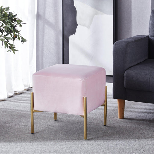 Artisan Design FurnitureSQUARE OTTOMAN BLACK/BLUE/GREY/PINK/WHITE VELVET STAINLESS STEEL LEGS/GOLDÂ FINISH OVERALL SIZE: 15.7"Lx15.7"Dx16.5"H ASSEMBLY REQUIRED