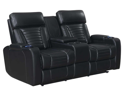 View full detailsSteve Silver Lavon Dual Power Leatherette Console Loveseat in Midnight