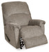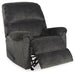 A mastery in "less is more," this rocker recliner manages to make cool, contemporary design so warm and cozy. Its smoky gray upholstery, incredibly plush to the touch, is a new twist on neutral. A curved divided back and a deeply tufted footrest give the clean-lined profile a sense of sumptuousness that's impossible to resist.