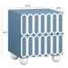 Say goodbye to a boring bedtime routine with the Tori Motif Nightstand, available in dreamy mauve or blue and sophisticated taupe, each featuring a statement-making facade that truly pops. Its solid wood, spherical legs infuse a sculptural Hollywood buzz, while the medium sheen on the surfaces delivers just the right amount of drama without fussy maintenance. Plus, the nightstand's drawers glide smoothly on soft-close rails, ensuring you keep the morning peace, not waking your partner as you start your day.