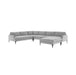 The Serena Collection makes modern design soft and cozy and is sure to become your favorite spot. This 5-piece sectional—left-arm loveseat, right-arm loveseat, armless chair, corner chair, and ottoman—is upholstered in a luxurious gray distressed velvet for lots of texture, and is available in three colors. The clean lines are complemented by tall matte black metal legs. Enjoy our preset configurations or customize your own design - the Serena is the sectional you have been looking for.
