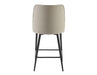 - Counter chairs constructed of upholstered fabric with iron legs and stretchers for support and comfort