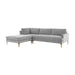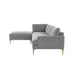 The Serena Collection makes modern design soft and cozy and is sure to become your favorite spot. This 3-piece sectional—right-arm loveseat, corner chair, and ottoman—is upholstered in a luxurious gray distressed velvet for lots of texture, and is available in three colors. The clean lines are complemented by tall metal legs finished in brass. Enjoy our preset configurations or customize your own design - the Serena is the sectional you have been looking for.