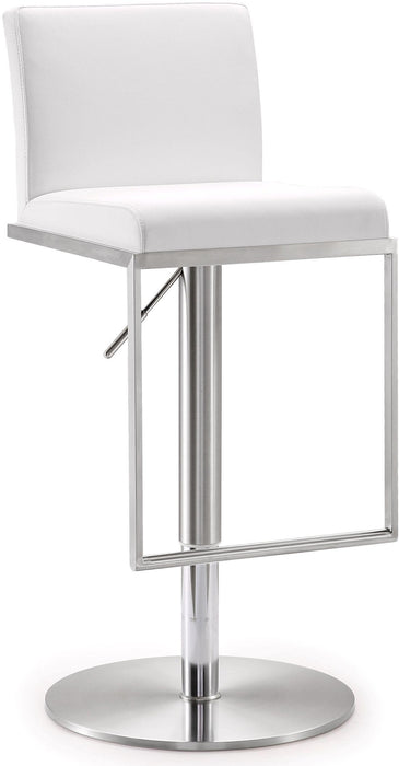 Furnish your kitchen or bar area in contemporary style with the Amalfi stool from TOV. The solid stainless steel frame provides a sturdy base, while the plush seat and footrest ensure maximum comfort. The combination of angles and gentle curves gives this stool an eye-catching appearance, while the neutral color allows it to match well with any decor.