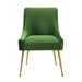 Sit pretty in this sumptuous yet durable velvet chair. The Beatrix dazzles as a dining chair or as an accent piece. Available in several colors with fab gold stainless steel legs and a matching handle on the back. Prop it into any room for a luxe, glamour effect.