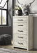 What a delightful take on rustic industrial style. Whether modern loft or modern farmhouse, this chest makes itself at home. The wispy whitewash palette enhances without covering the grain for that weathered look you crave. Elongated drawer pulls elevate the aesthetic.