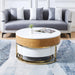 - MDF/WHITE LACQUER/STAINLESS STEEL BASE/GOLD FINISH