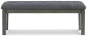 Cool and on-trend. This dining bench sports a two-tone gray look for a contemporary-yet-casual feel. The cushioned foam seat in a gray textural fabric pairs seamlessly with the antiqued gray finish, providing you with a super-stylish and versatile seating option.