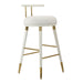 Upgrade your entertainment space or kitchen with the Juniper White Vegan Leather Stool! This stool features a vegan leather and gold iron accented base and backrest to add a touch of elegant charm and ensure durability. With a soft and luxurious white vegan leather seat, you can enjoy your drinks or meals in comfortable style.