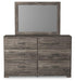 View full detailsWith its clean-lined look and modern attitude, this dresser and mirror is a fresh style awakening. A warm gray hue over replicated oak grain easily...